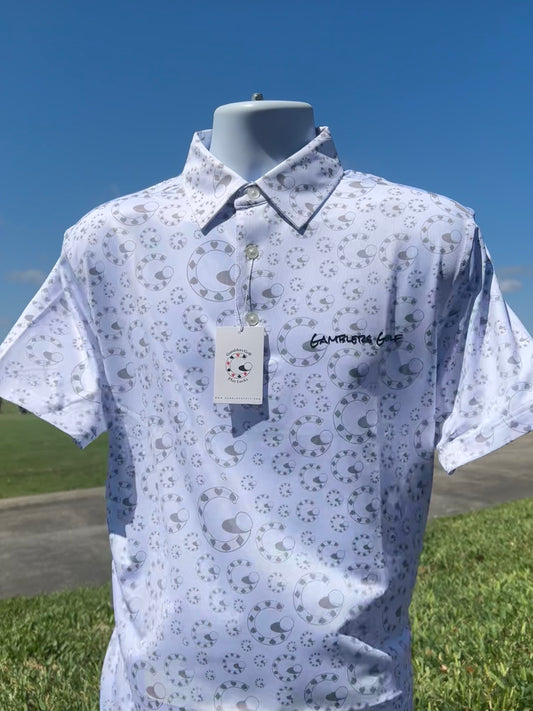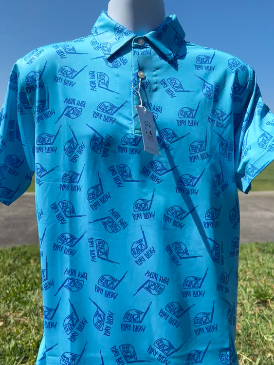 Gamblers Golf Play Lucky Blue Print Golf Shirt